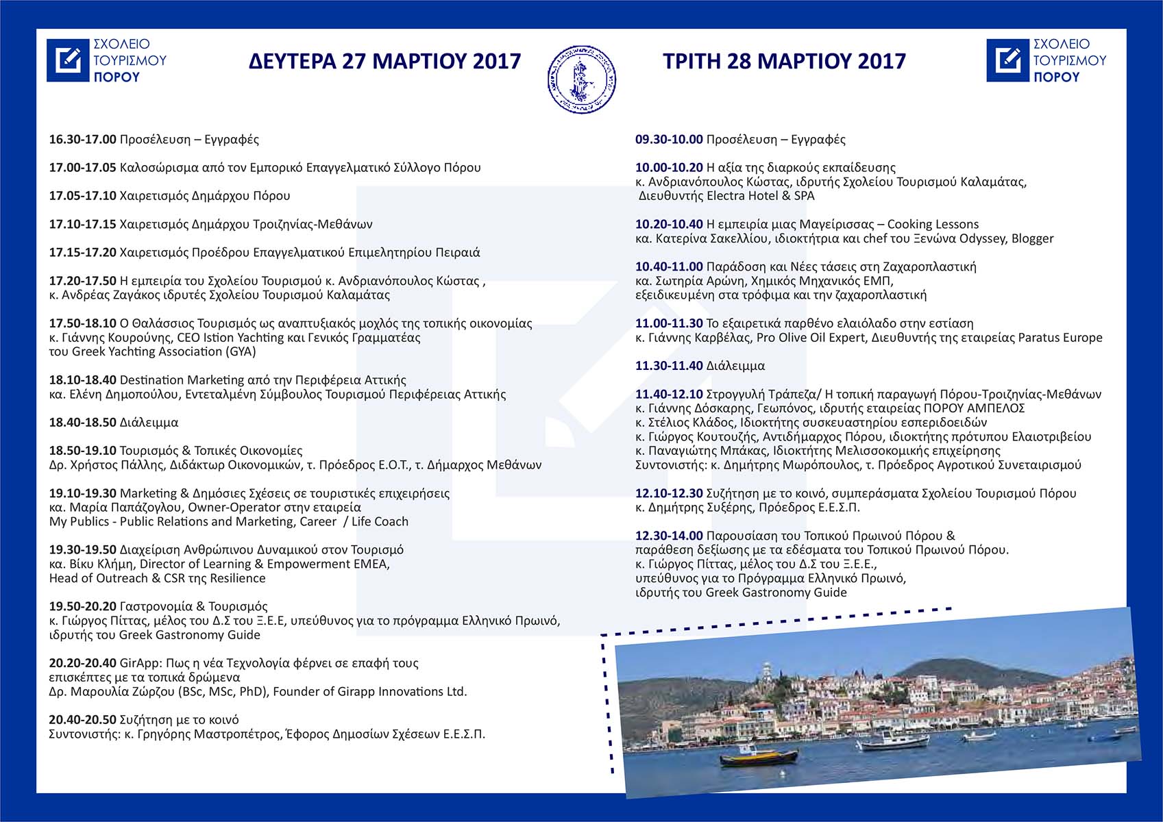 Έντυπο Προγράμματος Σχολείου Τουρισμού Πόρου (2017)
